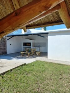 agua corriente solo servicio , hay pozo para la cloaca y cañería de 3 picos para gas envasado , 2 dormitorios , baño coc/com living , lavadero y garage , pileta de 2.60 x 5 aprox , galería semi cubierta con parrillero y mesada con agua y cloaca más 1 habitación pegado a ese quincho para guardado